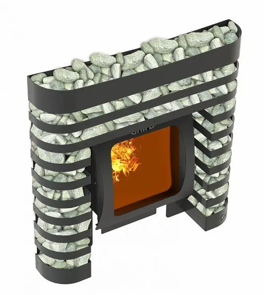Экран декоративный предназначен для обрамления топочного канала и дверцы банных печей марки «Grill’D». Не требует дополнительной доработки конструкции печи. Незаменим при реализации дизайнерских решений в банных комплексах. По стилю гармонирует с печами. Дополняет эстетичный вид печи и помещения установки в целом.