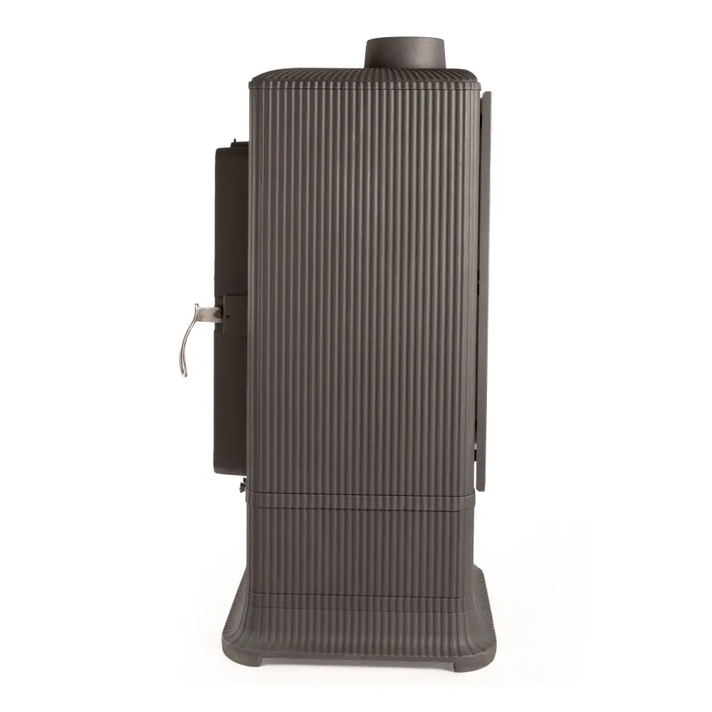 Корпус печи-камина FireWay Verta (ФаерВей Верта) выполнен из чугуна и окрашен в цвет антрацит. Мощность печи — 10 кВт, чего достаточно для помещения в 250 м3. КПД — 75%. Очаг прямоугольной вытянутой формы с большим прямым стеклом. Топочная камера выполнена из чугуна СЧ20 и футерована вермикулитом. В печи используется подовой тип горения. Дымоход, диаметром 150 мм, подключается сверху или сзади.