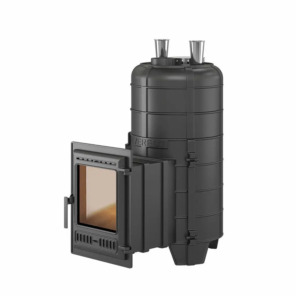 Верхняя часть топки изготовлена из чугунных колец. В печи Эверест "Steam Master" 32 (320) ЧУГУН между топкой и крышкой размещены два кольца высотой 120 мм.