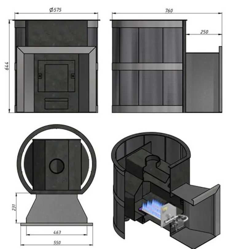 5.Конвекционно-вентилируемый кожух вмещающий до 50 кг камней