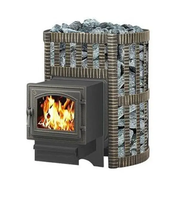 Банная чугунная печь Легенда Ковка 12 (260) укомплектована чугунной герметичной дверцей Везувий 260 с жаропрочным стеклом «SCHOTT ROBAX». Конвекционно-вентилируемый кожух "Ковка" изготовлен из металлической текстурированной полосы покрашенной термостойкой краской и покрытая патиной «Бронза».
