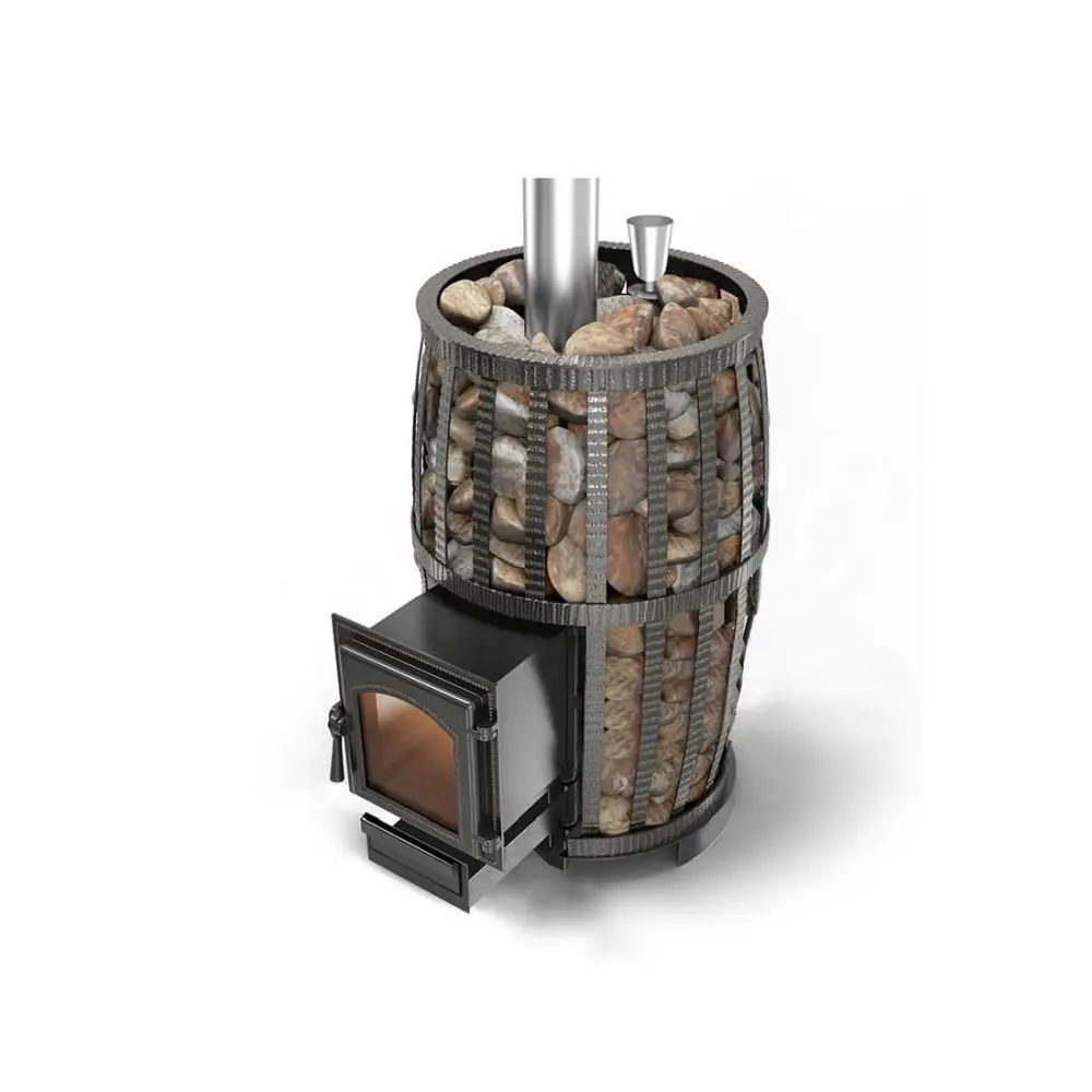 Дровяная печь для бани Везувий Легенда Русский пар Ковка 30 (270), с закрытой каменкой и парогенератором в комплекте, обогревает парное помещение от 18 до 32 м3.