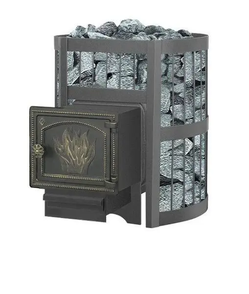 Банная чугунная печь Легенда Стандарт 12 (Дт-3) укомплектована чугунной дверцей Везувий Дт-3. Конвекционно-вентилируемый кожух "Стандарт" изготовлен из металлического прутка диаметром 6мм покрашенной черной термостойкой краской.