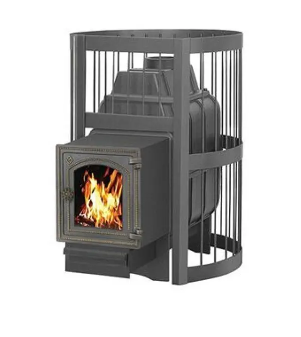 Банная чугунная печь Легенда Стандарт 28 (ДТ-4С) укомплектована чугунной не герметичной дверцей Везувий ДТ-4С с жаропрочным стеклом «SCHOTT ROBAX». Конвекционно-вентилируемый кожух "Стандарт" изготовлен из металлического прутка диаметром 6мм покрашенной черной термостойкой краской.