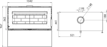 Печь-камин “Монблан” представляет собой объемную топку, защищенную металлическим кожухом. Изнутри она футерована вермикулитовыми пластинами, оформленными под кирпичную кладку. Топка вмещает поленья рекордной длины - до 80 см. Несмотря на солидные размеры и высокую мощность в 10 кВт, печь абсолютно безопасна в эксплуатации.