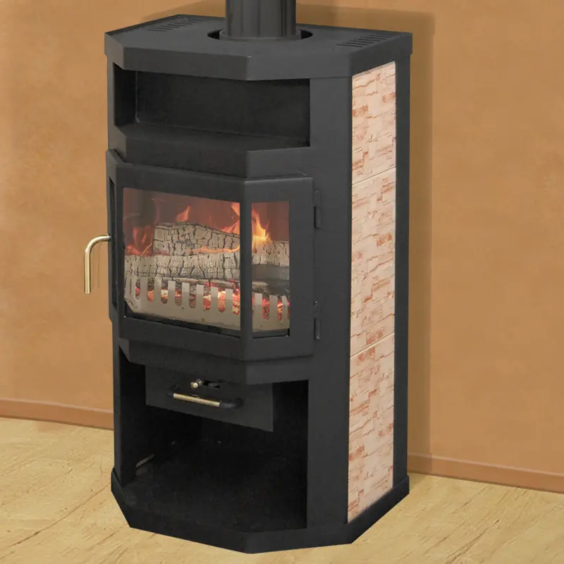 Печь-камин Мета-Бел Ока - компактная печь из стали с отделкой керамической плиткой, которая является отличным решением для обогрева небольших помещений, таких как дачные домики. Она также может служить в качестве вспомогательного или резервного источника тепла. Несмотря на небольшие размеры дверцы, она оснащена призматическим остеклением, что позволяет наслаждаться видом на пламя из любой точки комнаты. С мощностью 6 кВт печь способна эффективно обогреть помещение объемом до 120 м3. Благодаря конвекционному кожуху, горячий воздух быстро распространяется по комнате, обеспечивая мгновенный нагрев и комфортную температуру.